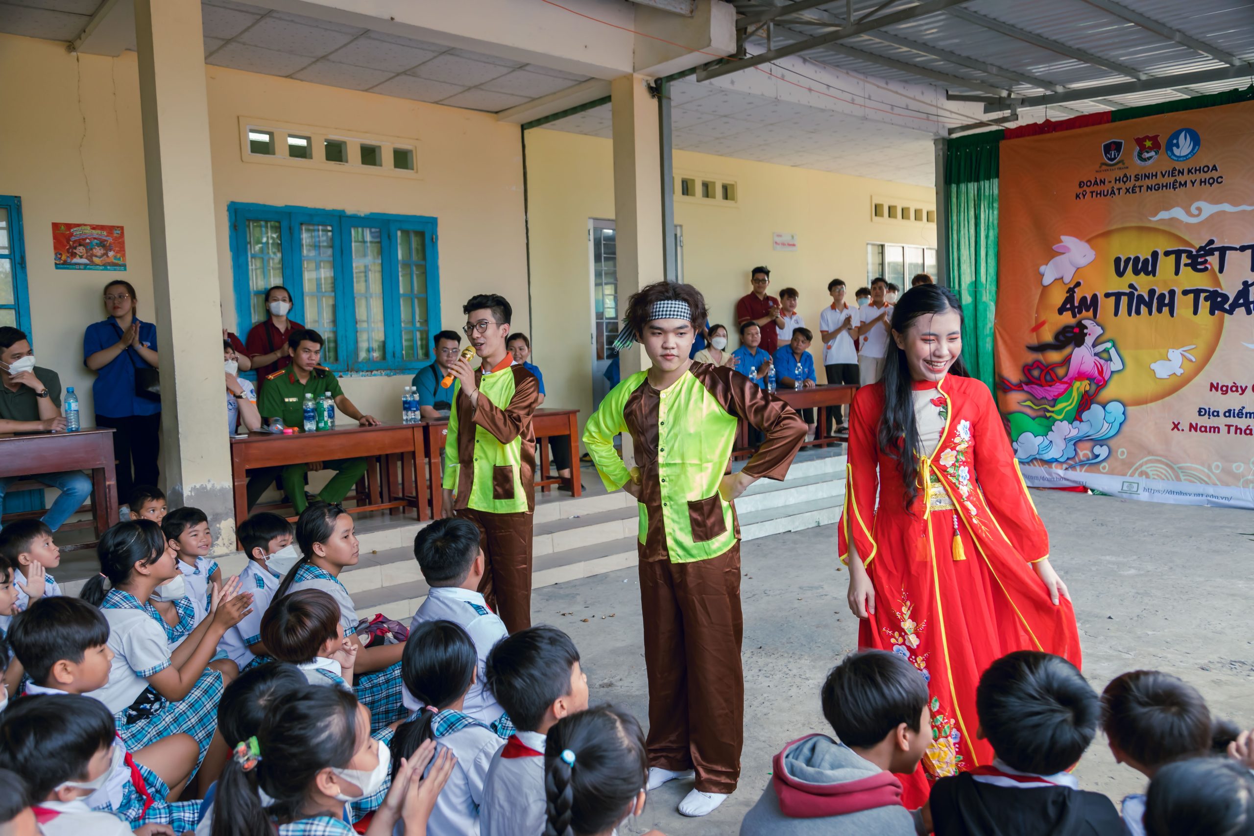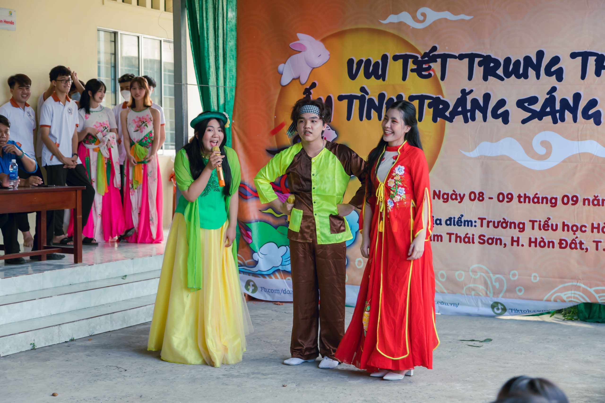Đên với trường Tiểu học Hòa Tiến ngoài các món quà các thành viên trong đoàn còn đem đến cho các em nhỏ ở đây những tiết mục văn nghệ, vở kịch “Chú cuội – Chị Hằng” đầy vui nhộn. Các em còn được tham gia vào những trò chơi của các anh chị tổ chức.