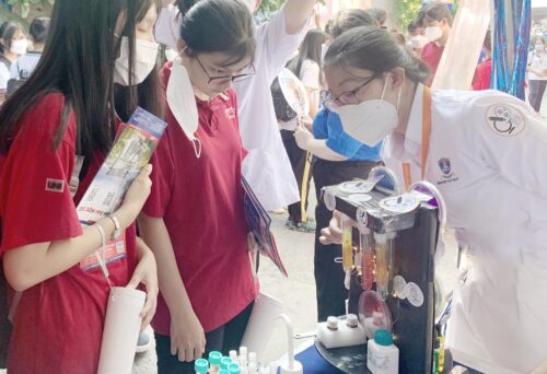 Các bạn học sinh cùng ghé thăm gian hàng tuyển sinh Khoa Kỹ thuật xét nghiệm y học