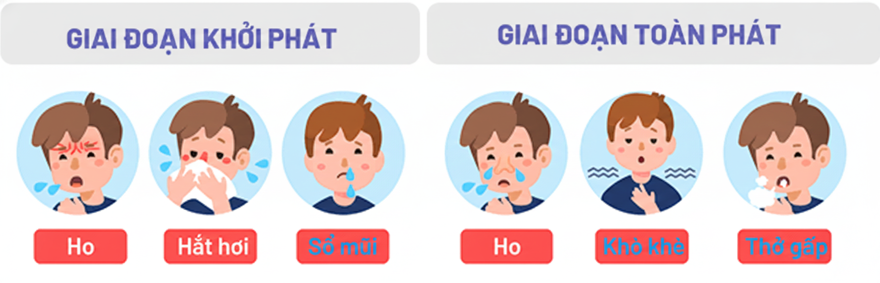 Các triệu chứng này thường xuất hiện theo từng giai đoạn chứ không đồng thời ngay từ đầu.