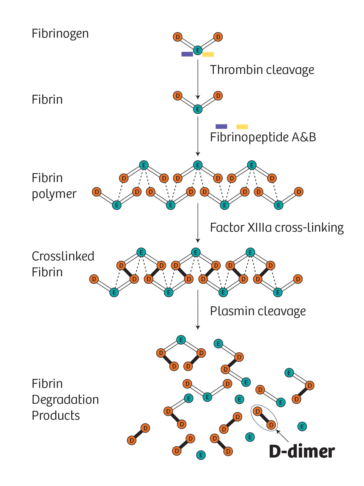D-dimer là sản phẩm phân hủy fibrin (hoặc FDP), một đoạn protein nhỏ có trong máu sau khi cục máu đông bị phân hủy do tiêu sợi huyết. Nó được đặt tên như vậy vì chứa hai đoạn D của protein fibrin được nối với nhau bằng một liên kết chéo.