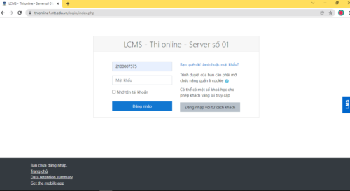 Hình 2. Sinh viên đăng nhập vào đường link thionline1.ntt.edu.vn - Thông tin đăng nhập của sinh viên là tài khoản đăng nhập vào http://lms.ntt.edu.vn
