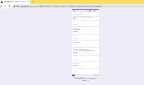 - Trong trường hợp, khi thi gặp sự cố không mong muốn làm ảnh hưởng tới quá trình làm bài thi và kết quả thi. Các bạn hãy bình tĩnh, chụp màn hình ngay tại thời điểm lỗi xảy ra hoặc quay phim màn hình đối với các trường hợp load đề lâu, load các file bài làm chậm, điền đầy đủ vào các trường thông tin trong biểu mẫu: https://forms.gle/mkKtfXURWws46hqz8